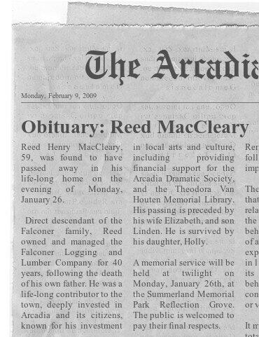 Deeply interested in Arcadian history, most particularly the genealogy of its Founding Families, Mrs. MacCleary has been a librarian for over 50 years. Changing her name back to MacCleary after the death of her husband, she is the mother of history teacher Benjamin MacCleary, and one of the best available sources of information about the town.