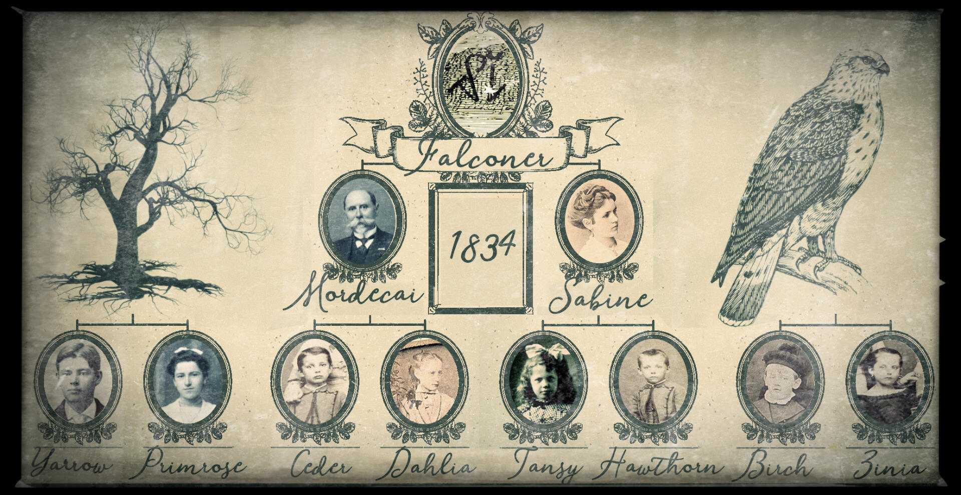 An often-overlooked member of the Falconer family, Delphine lives in a small house near the edge of the Timberland. Her history is as confused as her sense of the present, but it's said she left Arcadia for some time when she was younger, returning to live with Reed and Elizabeth MacCleary, before moving out on her own. She talks frequently of the past, but only the parts involving her twin brother, Deacon, who died as a child.
