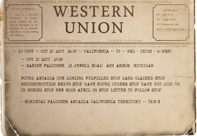 Arcadia, California is a small, close-knit community in Northern California, about an hour north-east of Redding. Founded in 1827 by Mordecai Falconer and his wife Sabine, it was an established settlement over two decades before California became a state.Armed with a willingness to work, and a devotion to family, Mordecai and Sabine invited friends and acquaintances who shared their values, and together built a city that stood as a sanctuary in a largely unsettled wilderness.These additional families--MacCleary, DiCaprio, Sheridan, Baldwin, and Burns--joined the Falconers as the six Founding Families of Arcadia. Families whose hard work and steadfast beliefs continue to be reflected in the city’s prosperity and culture.Thanks to the Founders’ work and forethought, modern-day Arcadia remains as the Falconer’s wished--a protected haven for its people.